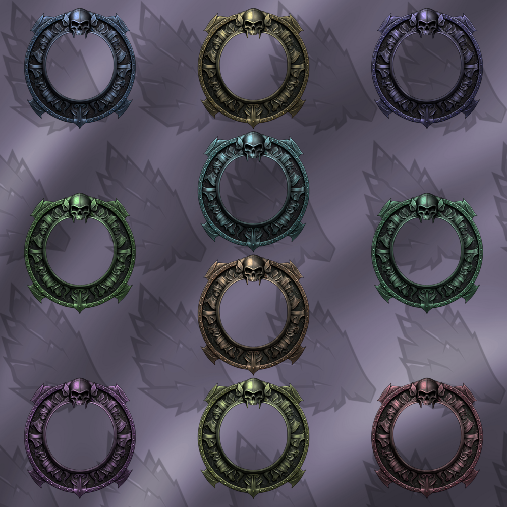 1 Zip file containing: - 1 PSD (2000x2000 px) in all colors - 10 PNG frames (2000 x 2000 px) High quality. - 10 PNG frames (560 x 560 px) for Roll20 and other VTTs