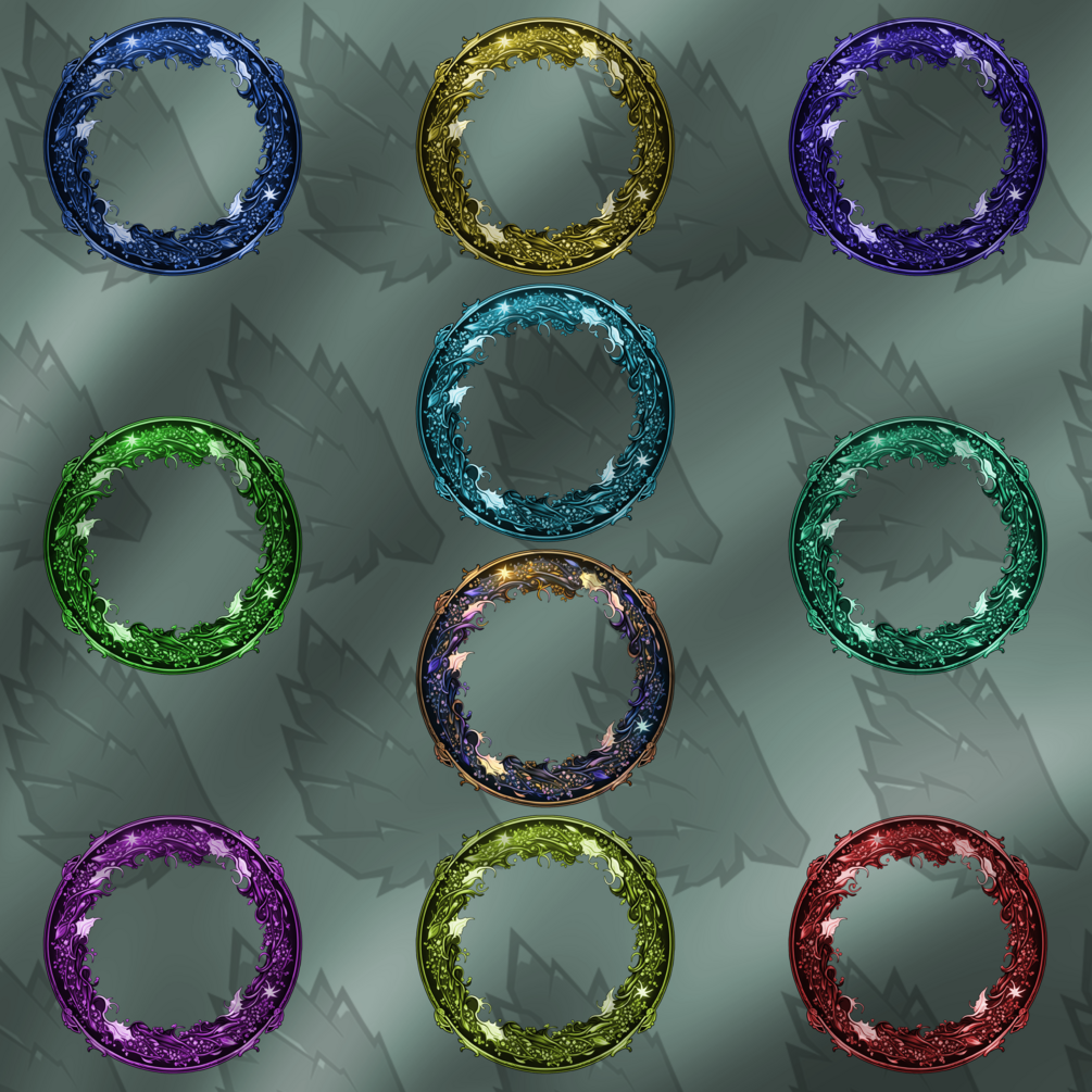 1 Zip file containing: 6 Frames each - 1 PSD (2000x2000 px) in all colors - 10 PNG frames (2000 x 2000 px) High quality. - 10 PNG frames (560 x 560 px) for Roll20 and other VTTs